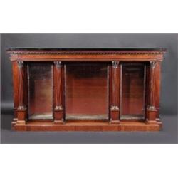 A 19th century mahogany floor standing breakfront bookcase, the ebonised shaped top above a moulded frieze and three glazed doors flanked with Corinthian capped fluted columns, standing on a plinth base, 230cm wide £800-1,200