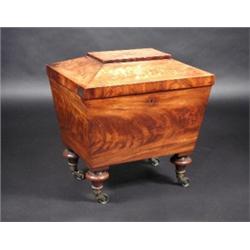 A 19th century mahogany wine cooler, of sarcophagus form with tapering sides, standing on turned feet with brass caps and castors, 54cm wide £500-700
