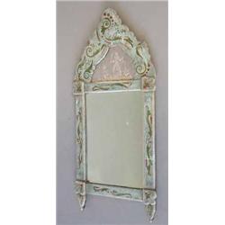 A 19th century mid European plated mirror, with verre eglomise panel of a figure representing justice, 2ft.7ins £100-150