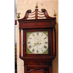 A 19th century oak, mahogany and inlaid cased eight day longcase clock, the square white enamel dial