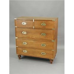 A 19th century oak military chest of two short and three long drawers (in two