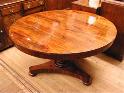 A 19th century rosewood tilt top breakfast table with circular top on pedestal base