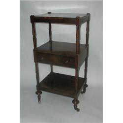 A 19thC Rosewood 3 tier what not stamped 'Wilson' with drawer to middle....