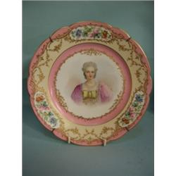 A 19thC Sevres Porcelain hand painted plate highly decorated, titled in red ink to the back "Louise de Savoie', the rear also bearing the Louis-Phillipe mark dated for 1844 and a Chateau Vileries mark, c1844, 9 1/2".