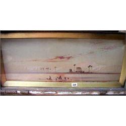 A 19thC watercolour of an Egyptian scene, signed, damaged to frame.