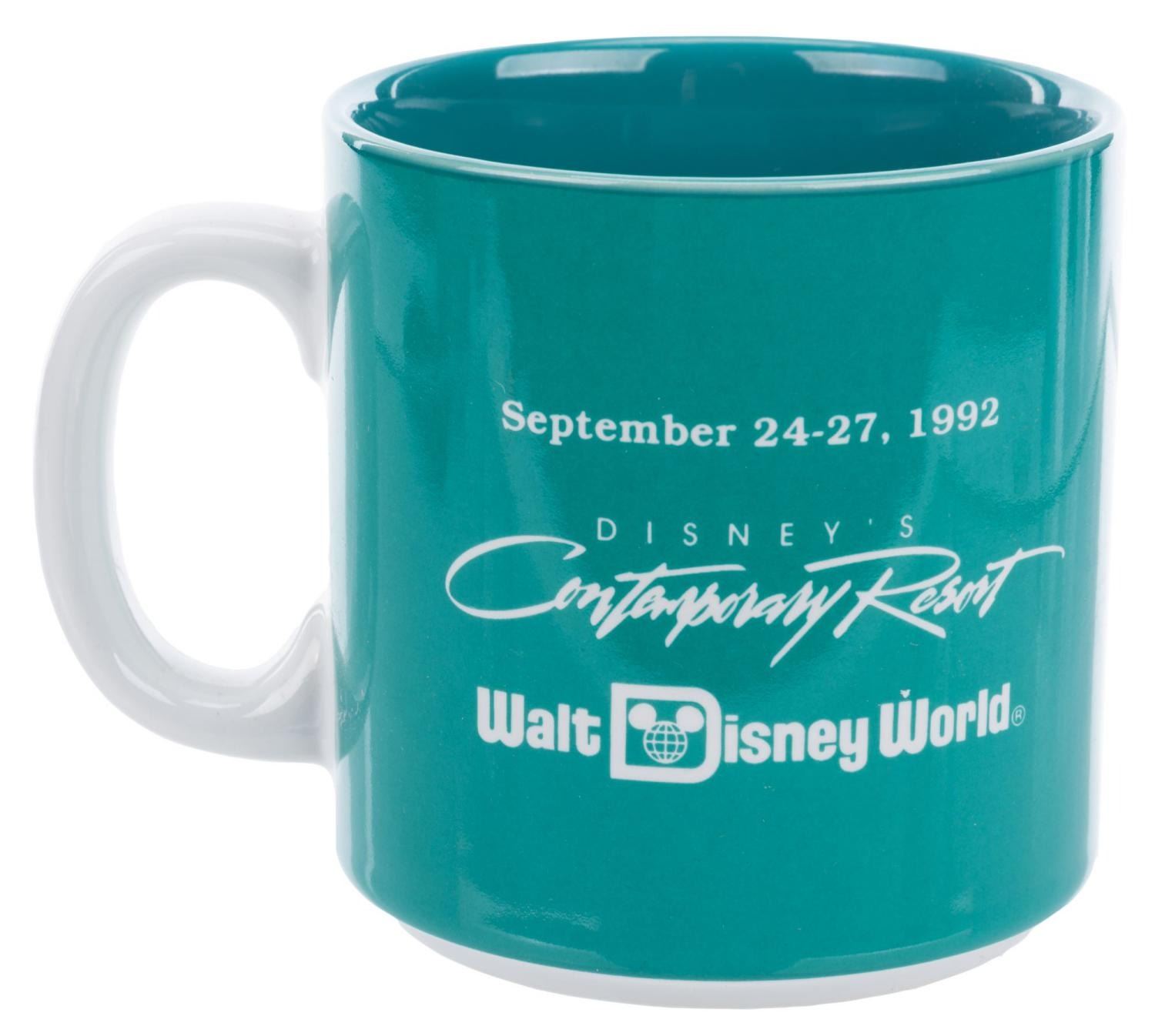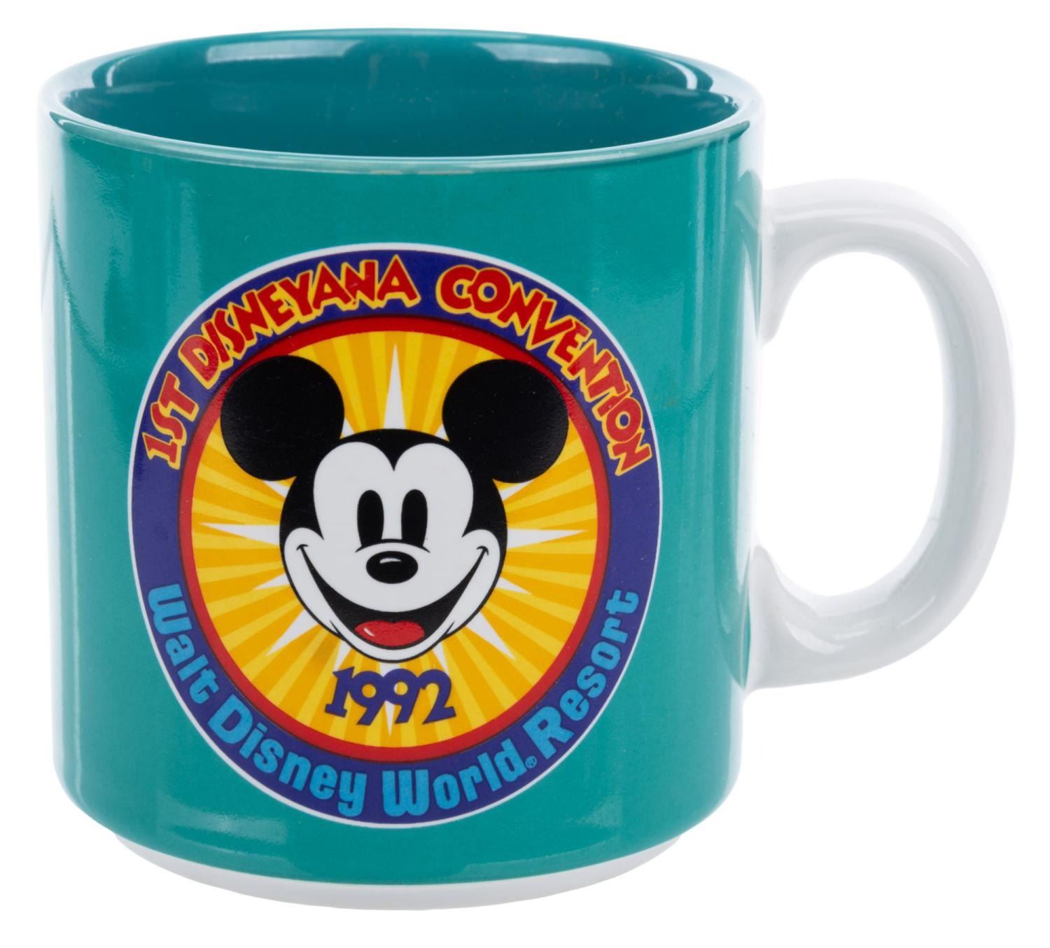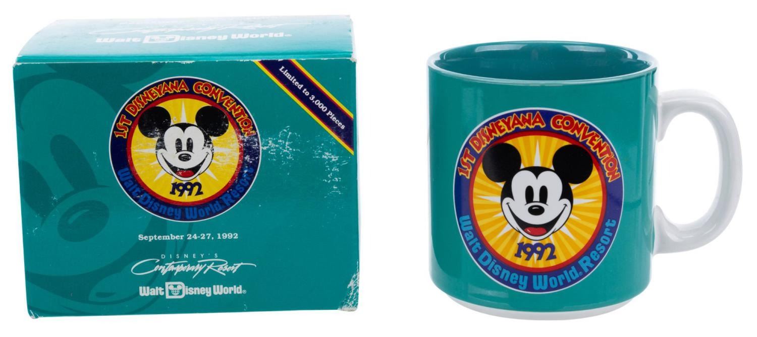 (Disneyana, 1992) A mug from the 1st Disneyana Convention at Disney’s Contemporary Resort, released in a limited edition of 3000. Measuring 3.25” in diameter and 3.5” tall with its original 3.5” x 4.75” x 3.75” tall box, the mug is in fine condition.