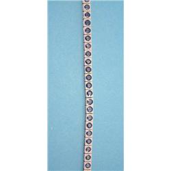 A 2-colour gold sapphire set line bracelet, the 30 round cut sapphires in square millegrain settings, 7.5ins £600-800