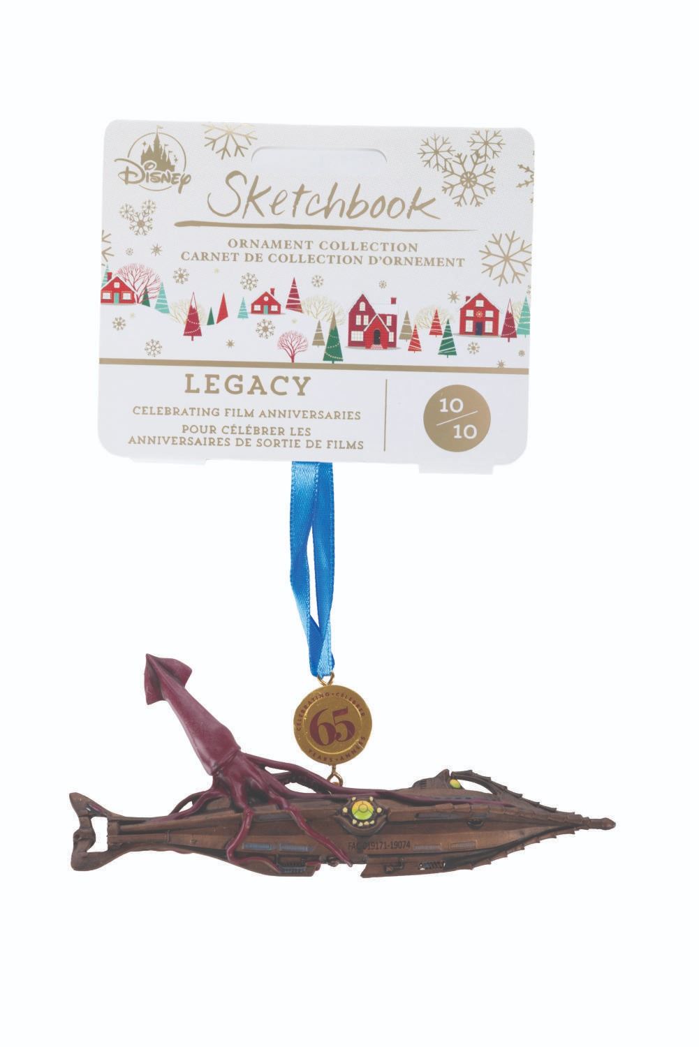 (Disney, 2019) A Sketchbook Nautilus with Squid Christmas ornament commemorating the 65th anniversary of "20,000 Leagues Under the Sea." Measuring 2" x 5", the ornament is in fine condition on the original card.