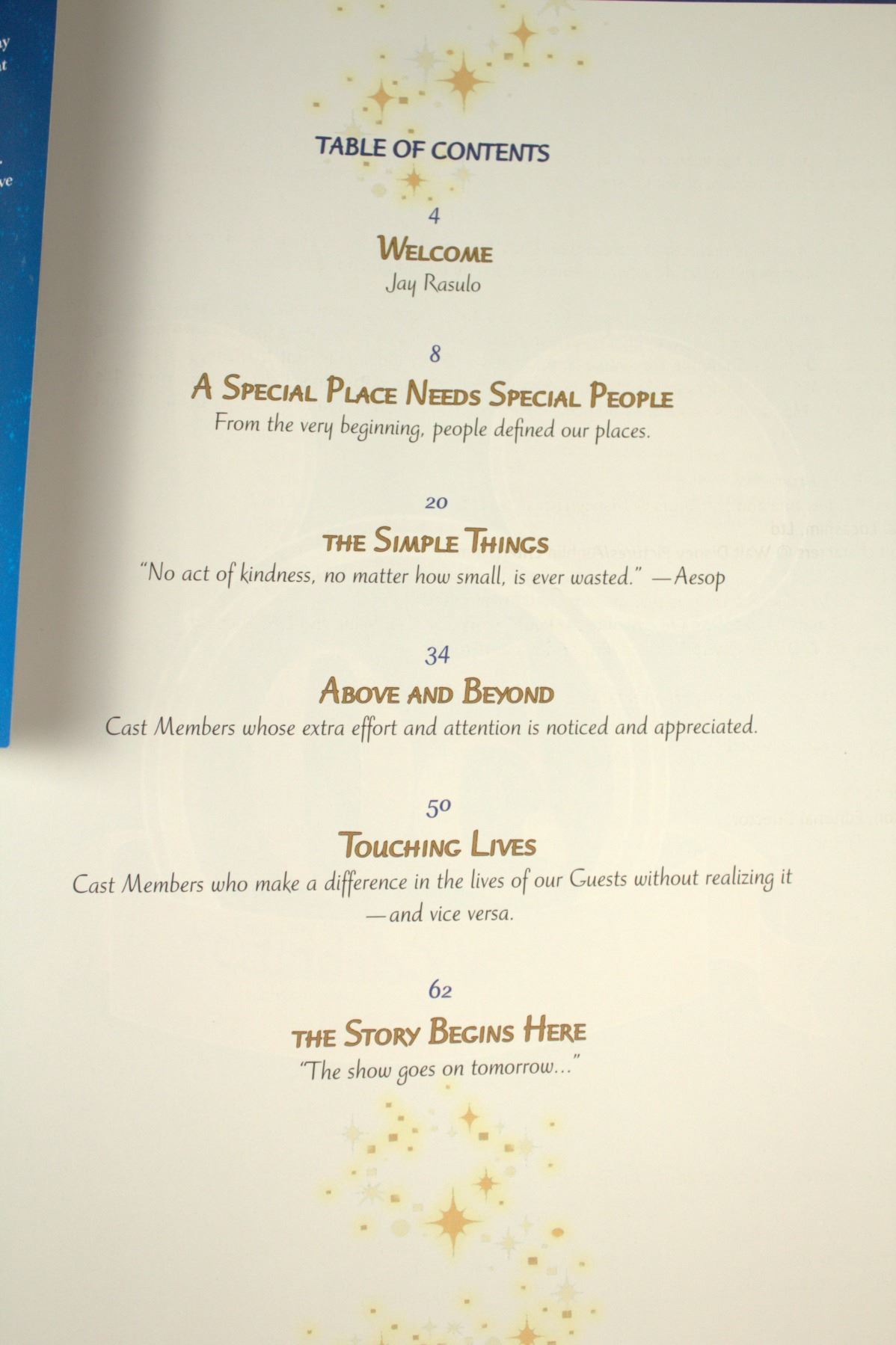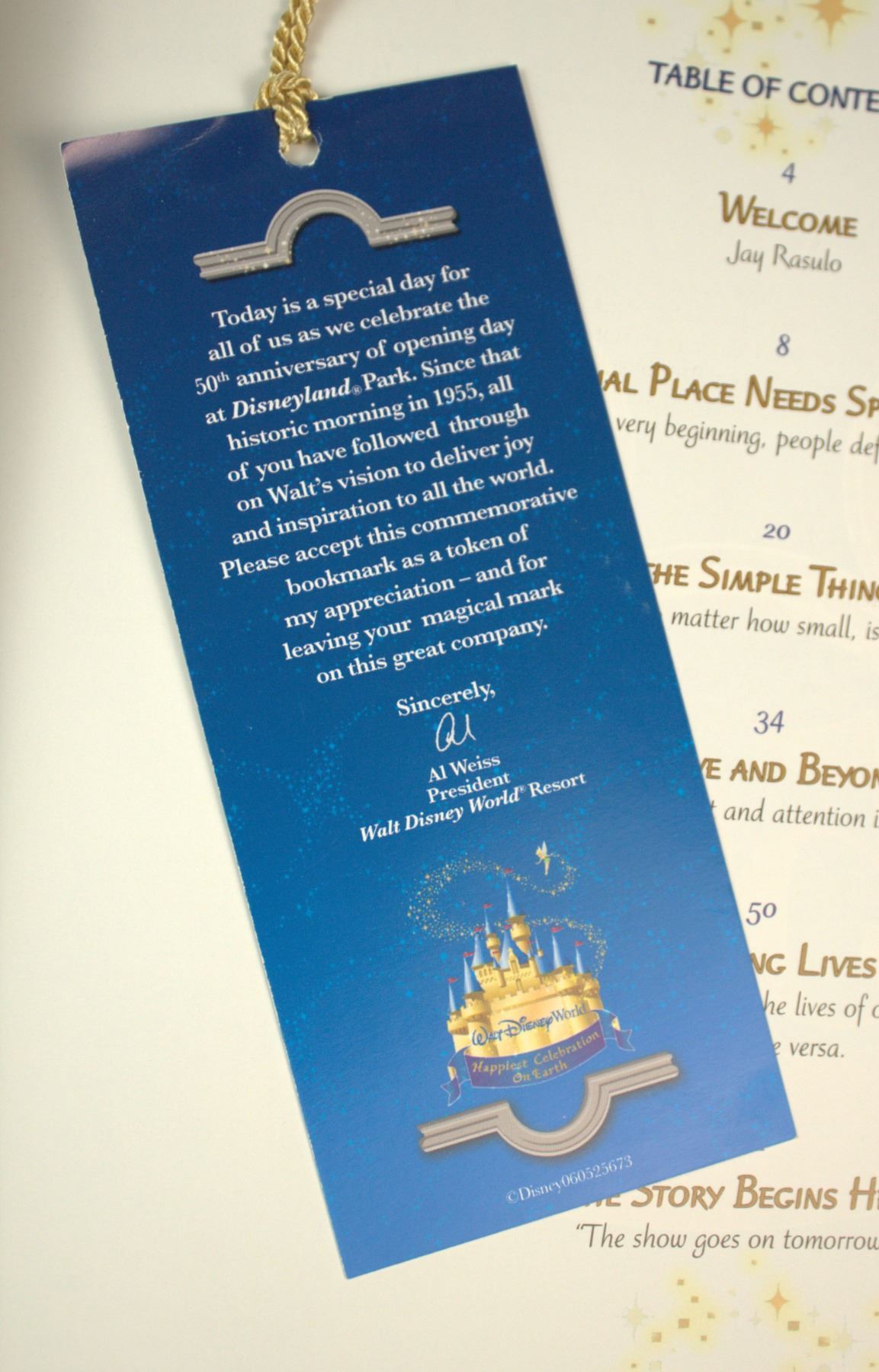 This book was presented in 2005 by Disney executive Jay Rasulo to cast members. Titled "The Magic begins with Me, A Happiest Celebration On Earth Keepsake", This book is filled with examples of positive stories of cast member interactions with guests and images from around the parks going back to 1955. The book is in mint condition.