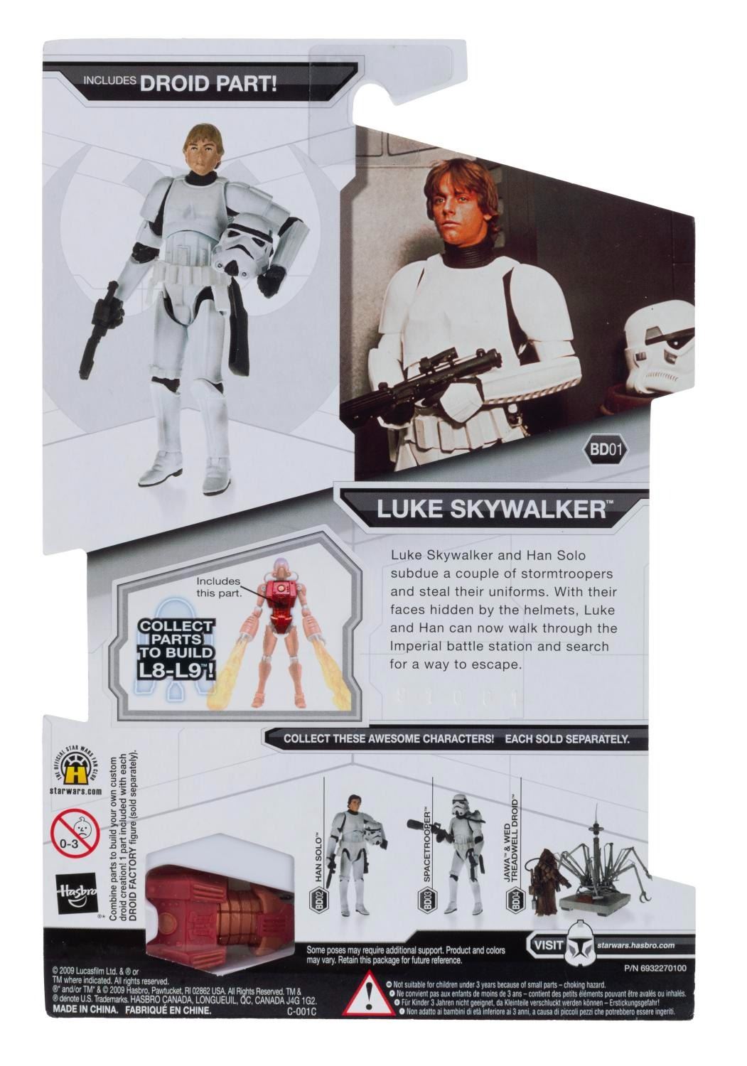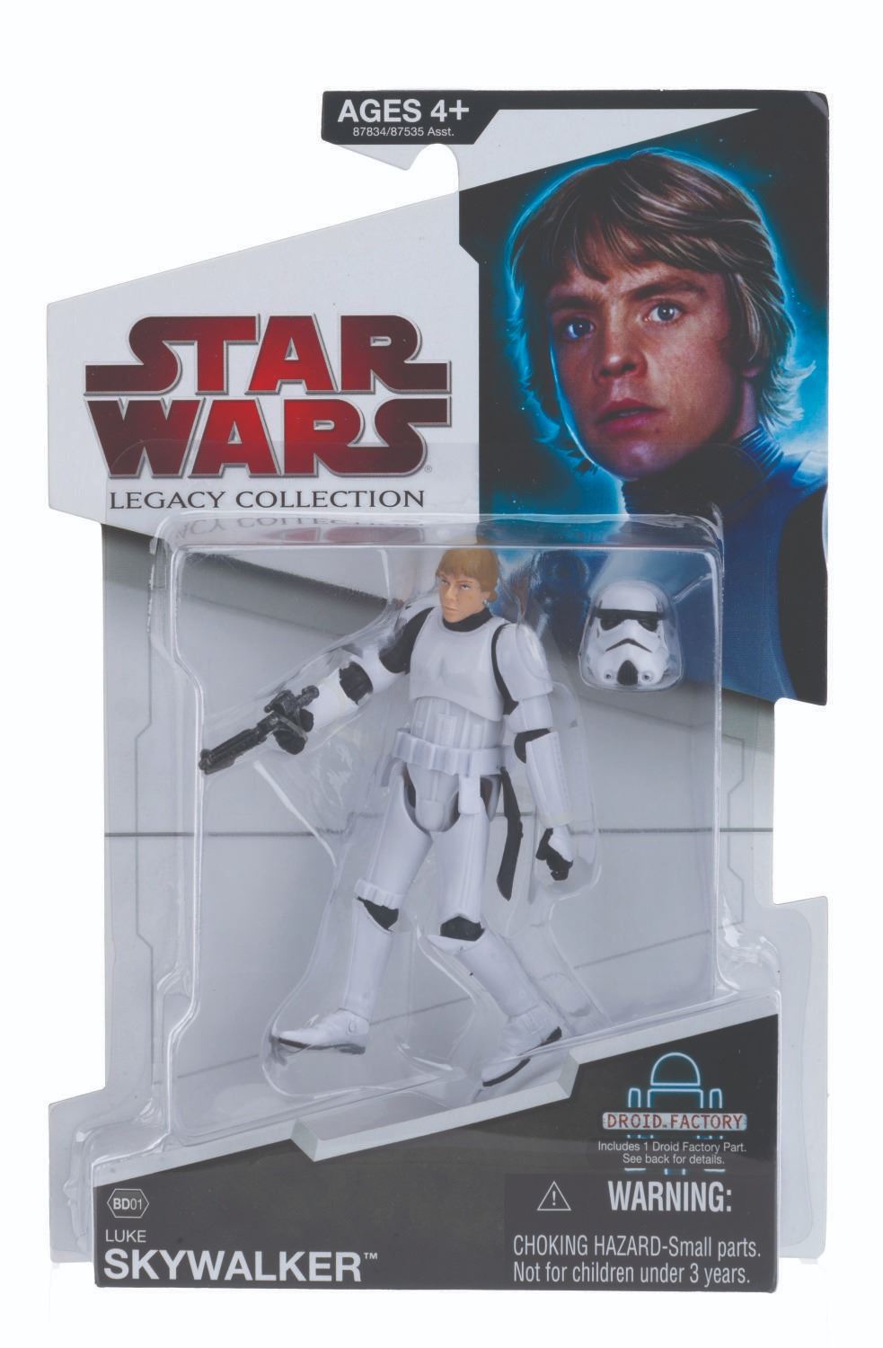 (Hasbro, 2009) A rare pre-production Star Wars Legacy Collection Luke Skywalker action figure with different packaging than the final release, sealed on the original card. The officially released figure featured Luke facing the front. Measuring 2.5” x 3.5” in its original 5.5” x 8” packaging, the toy is in fine condition with a light bend to the gun from the manufacturing process.