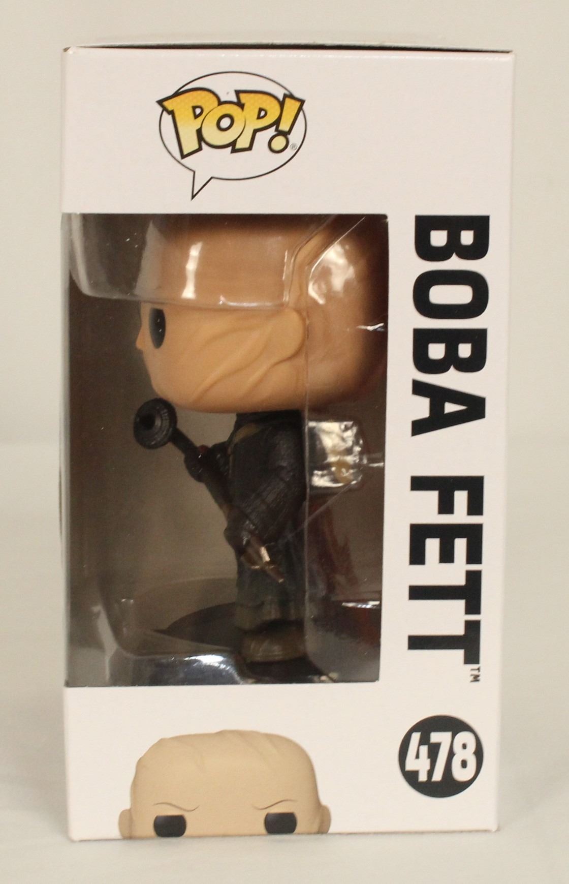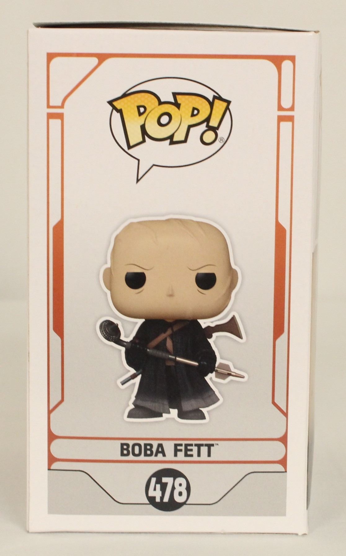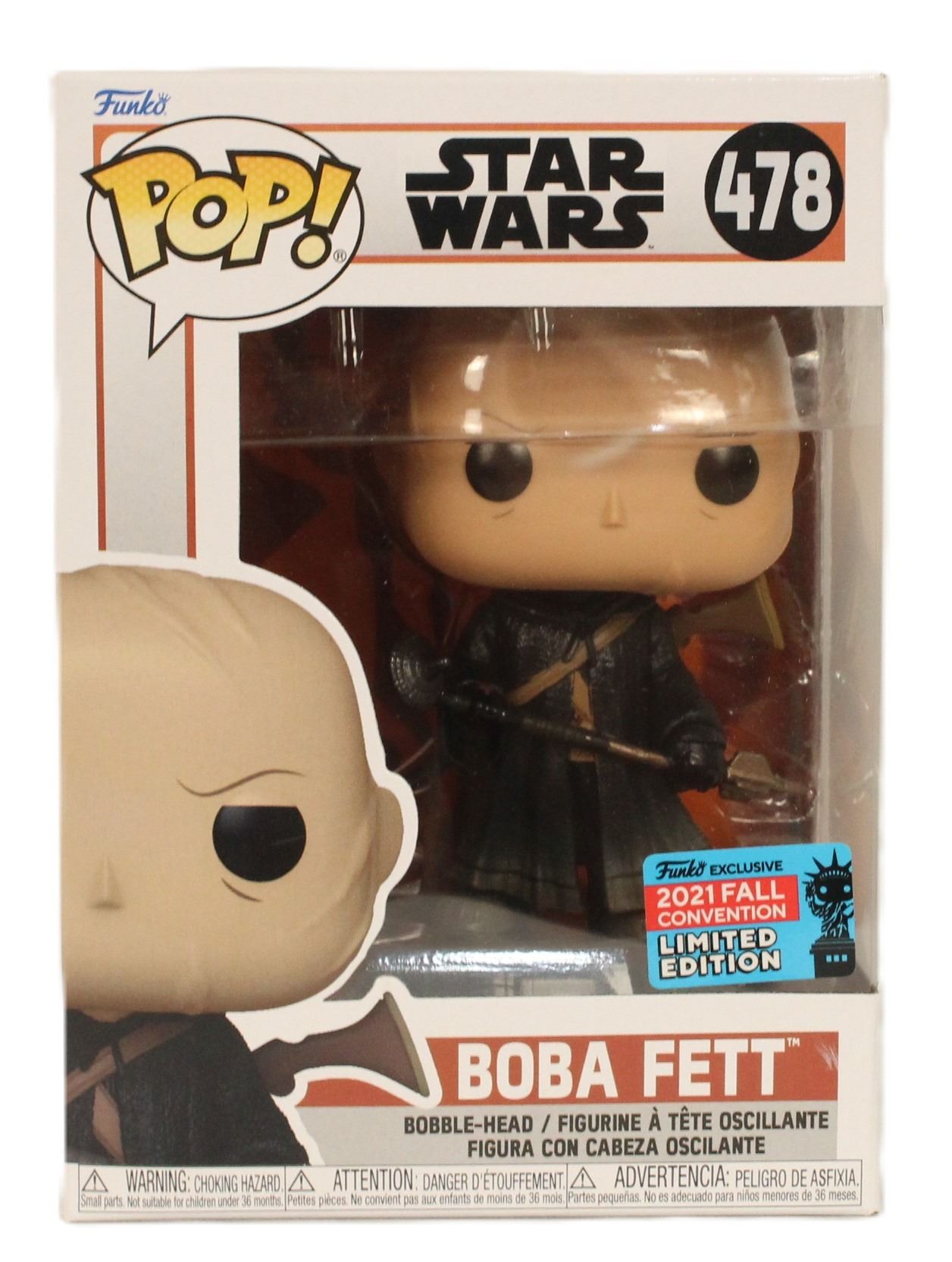 This is an excellent condition Boba Fett #478 2021 NYCC Funko Pop. This version of Boba Fett was introduced in the hit Disney Plus Show The Mandolorian and would go on the be in his own Disney Plus series, The Book of Boba Fett.