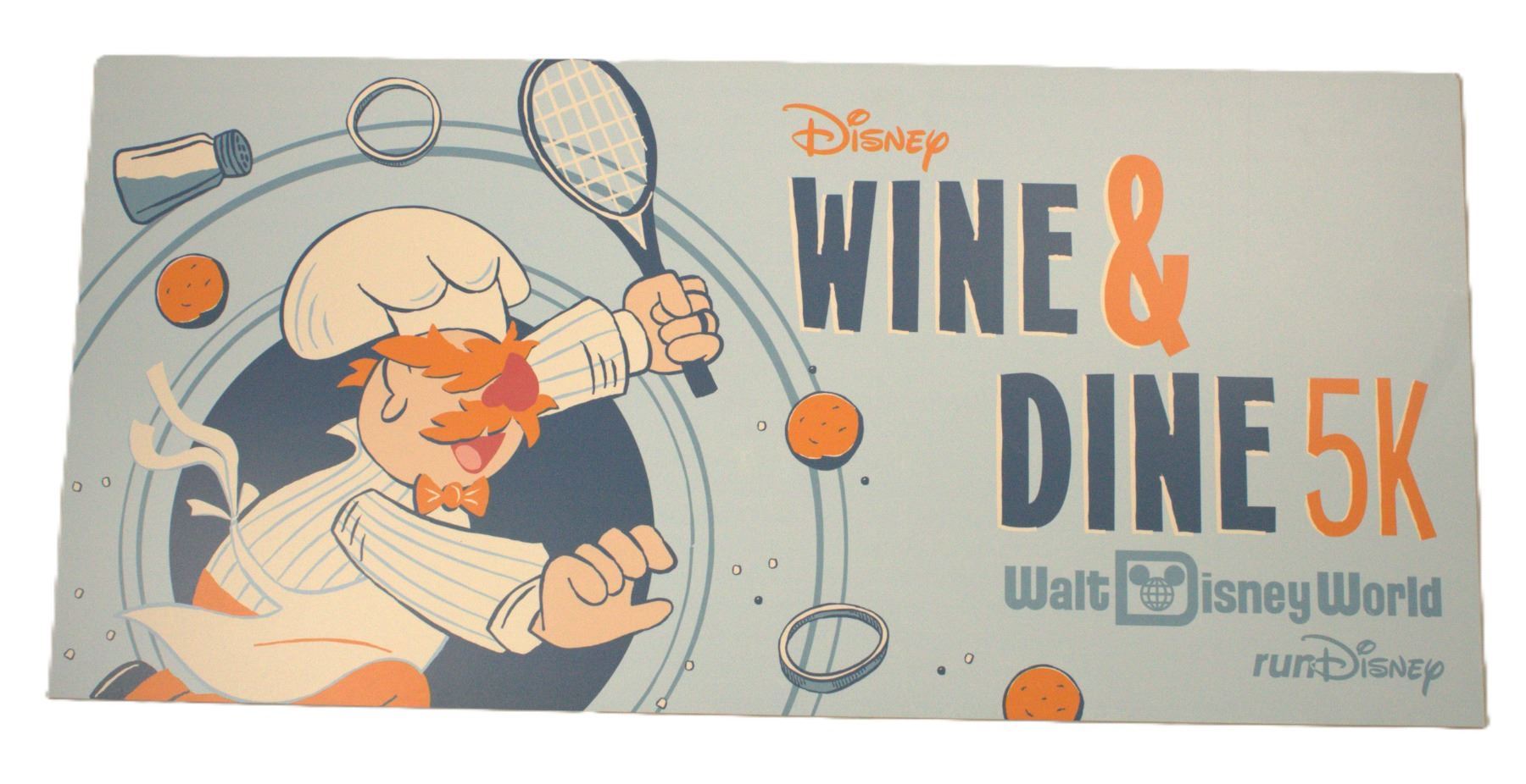 (Walt Disney World, 2024) This is a rare event sign from the 2024 runDisney Wine and Dine race event weekend. The sign features the Swedish Chef from Jim Henson's The Muppets. This rigid plastic board sign measures 46.75" x 31". It was only available for purchase at the conclusion of the event and there are only a few just like it in existence.