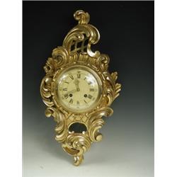 A 20th Century carved giltwood cartel clock with scrolled decoration and a striking movement,...