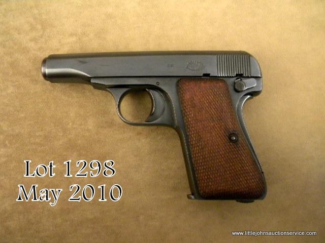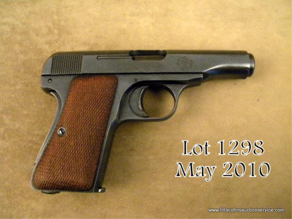 A .32 caliber Ortgies patent semi-auto pistol by DWM of Germany showing Chilean National crest on right side of slide and fancy script logo for DWM on left side of slide, #400. DMW was the primary manufacturer of Luger pistols but also producedmany other automatics on contract for the German military and commercial purposes. The Ortgies patent pocket auto was a favorite of German officers from WW I to WW II. A small number of the early models were known to have been contractedfor by the Chilean Government. This example has been professionally restored to excellent condition. Est.: $400-$800.