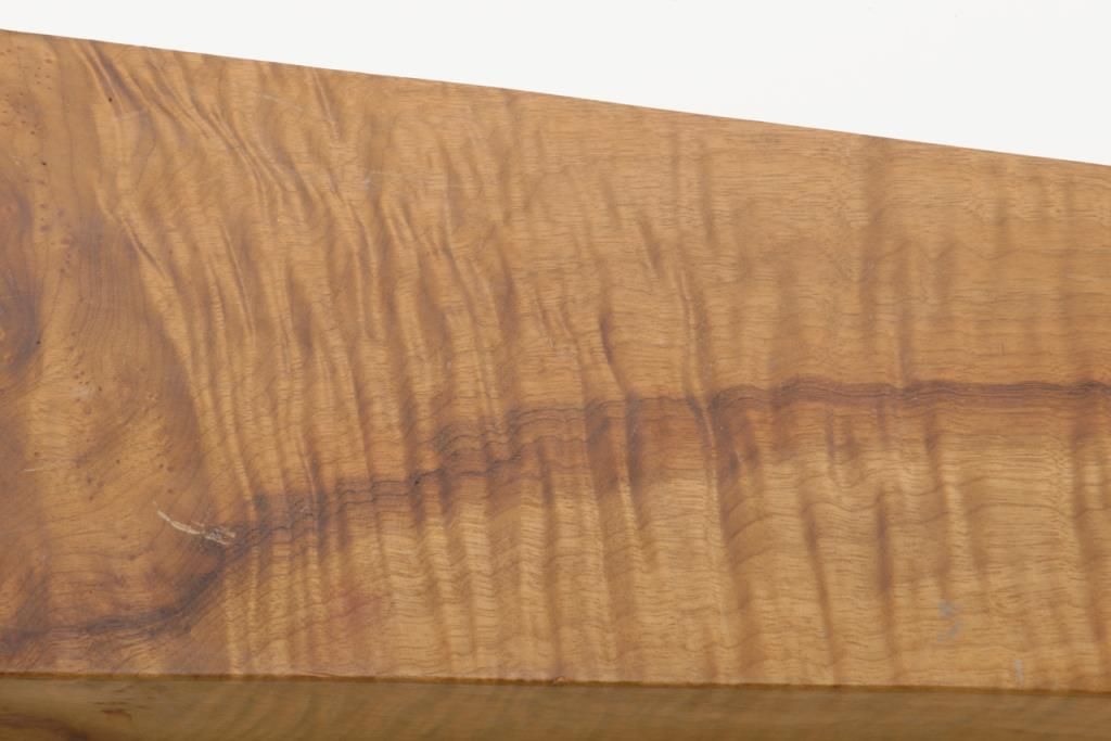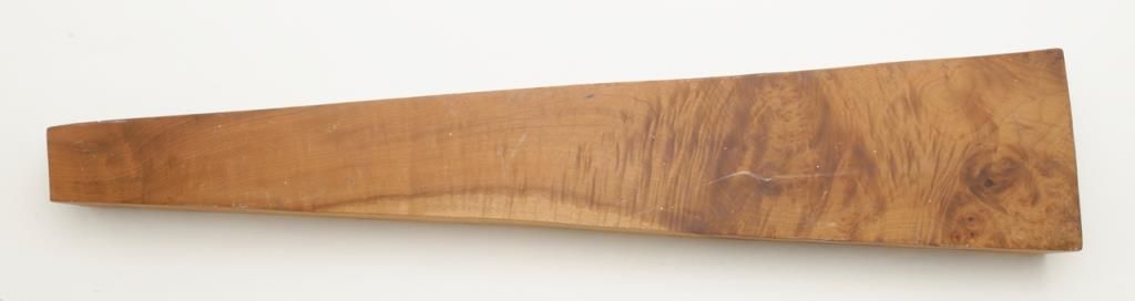 A 38 ½” stock blank which the consigner states is Oregon Myrtle. A dense, heavy blank showing great figure and fiddle back graining. Ready for stocking a stout rifle. Est.: $50-$100 (Modern/Exempt)