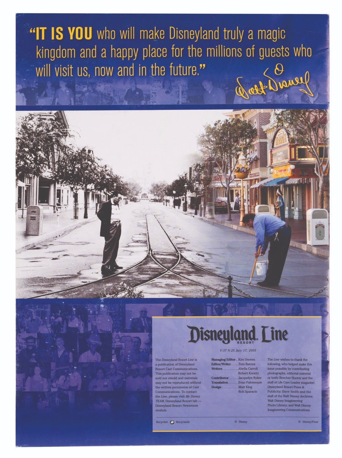 (Disneyland, 2005) A special oversized edition of Disneyland Line, the Park Cast Member newsletter, released in a limited edition of 18,000 on July 17, 1955, the Park's 50th anniversary. Measuring 9.5" x 13", the magazine is in very good condition with typical light handling wear.