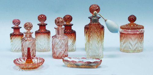 A 9 piece French Baccarat ruby crystal toilet set