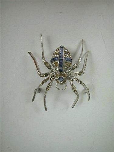 A 935 SILVER BUG BROOCH, set with small diamonds and sapphires, missing pin back, 1-1/4"w