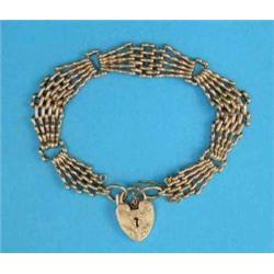 A 9ct gold fancy gate link bracelet, with engraved padlock clasp, 21grms £100-150