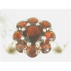 A 9ct gold garnet cluster ring, size K Est. 50/80