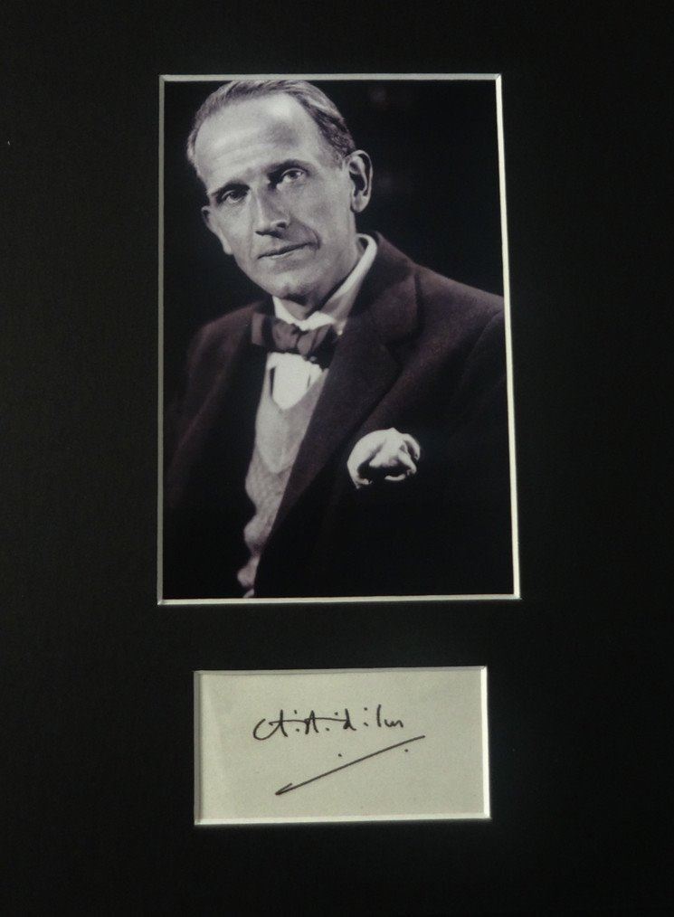 Alan Alexander Milne was an English author, best known for his books about the teddy bear Winnie-the-Pooh and for various poems. Milne was a noted writer, primarily as a playwright, before the huge success of Pooh overshadowed all his previous work. The autograph is mounted and framed, and supplied with coa.