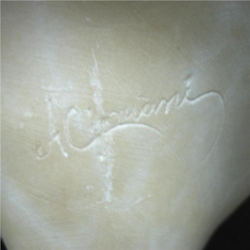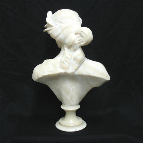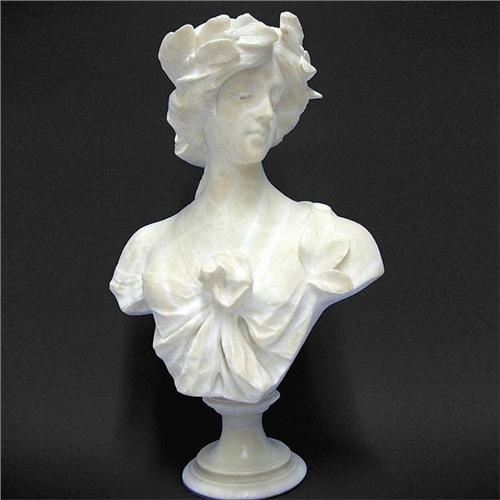 A (Ada) Capriani white marble bust of a young maiden with laurel wreath in hair; artist signed on back; early 20th C.; 14 1/2" high; some loss to laurel wreath in front and chips on bottom rim in back