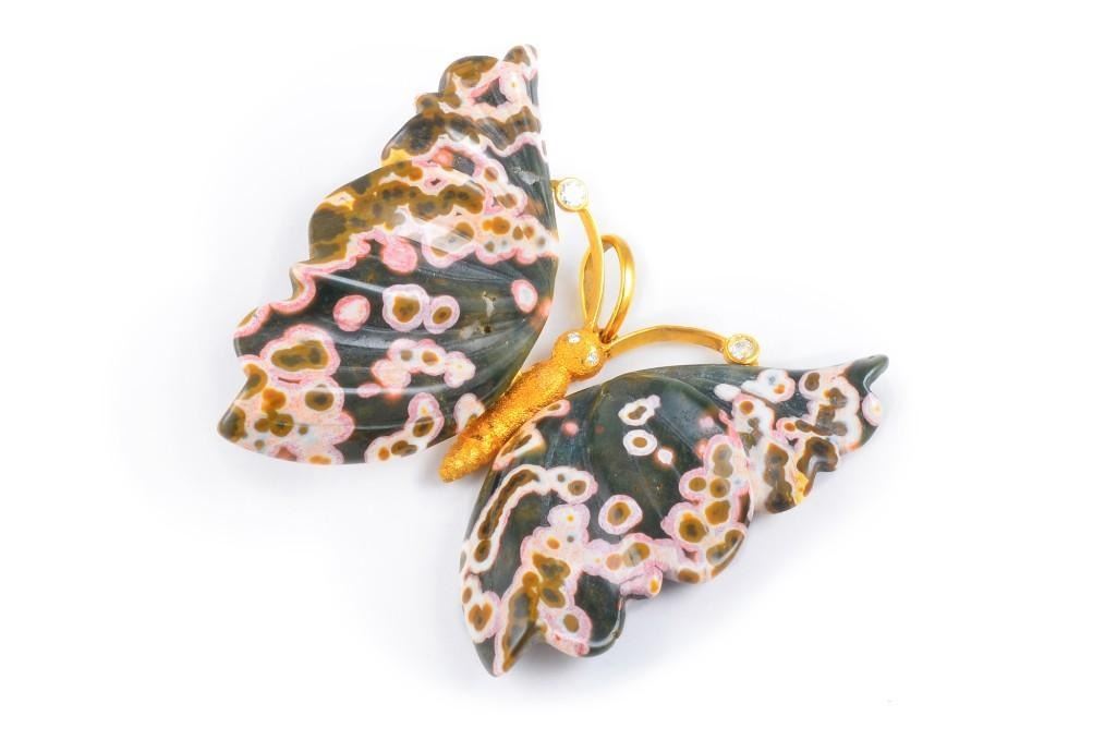 A Agate and Gold Butterfly Brooch, by Andreas Von Zadora-Gerlof