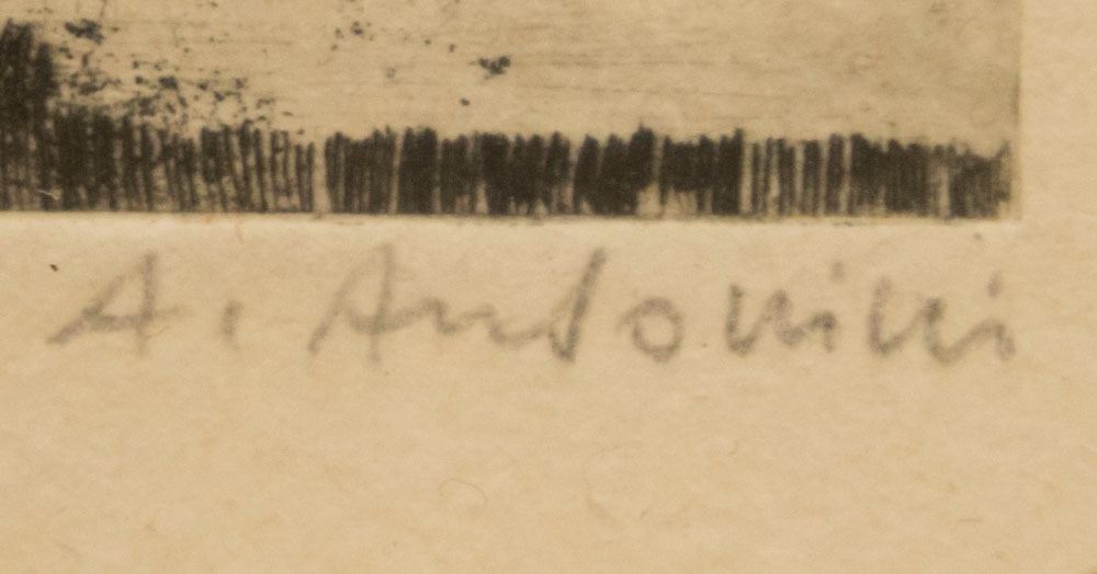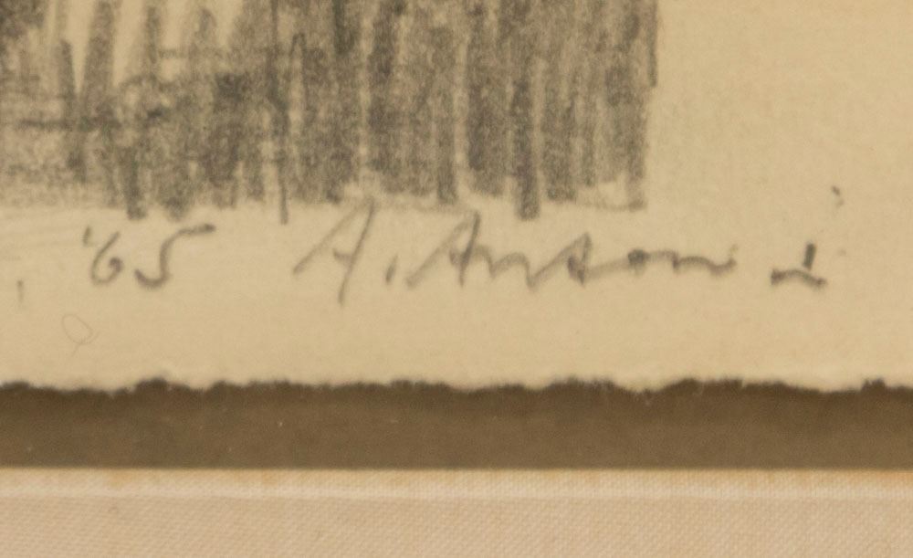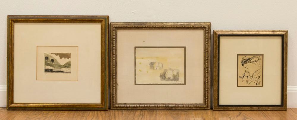 Dated '65. Print 13/15. A. Andomin signed and print AX. 3 prints. Smallest 12" high, 11" wide with frame, largest - 14" high, 15" wide with frame.