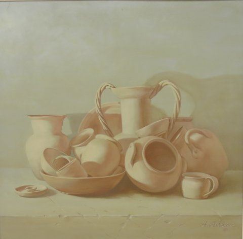 Framed. Signed lower right. Titled in Cyrllic rear. 20th century. Approx. 36" x 38" unframed, 38" x 40" framed. Property of a Bernardsville, NJ collection. (4069)