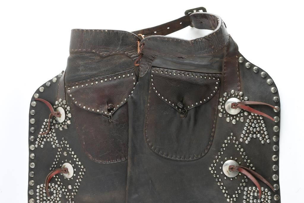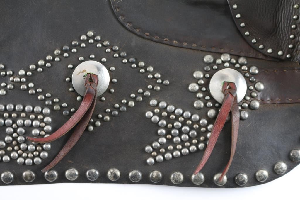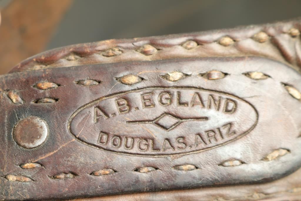 Smooth brown leather with spotted "ARIZ" down the sides maker marked made in Douglas Arizona