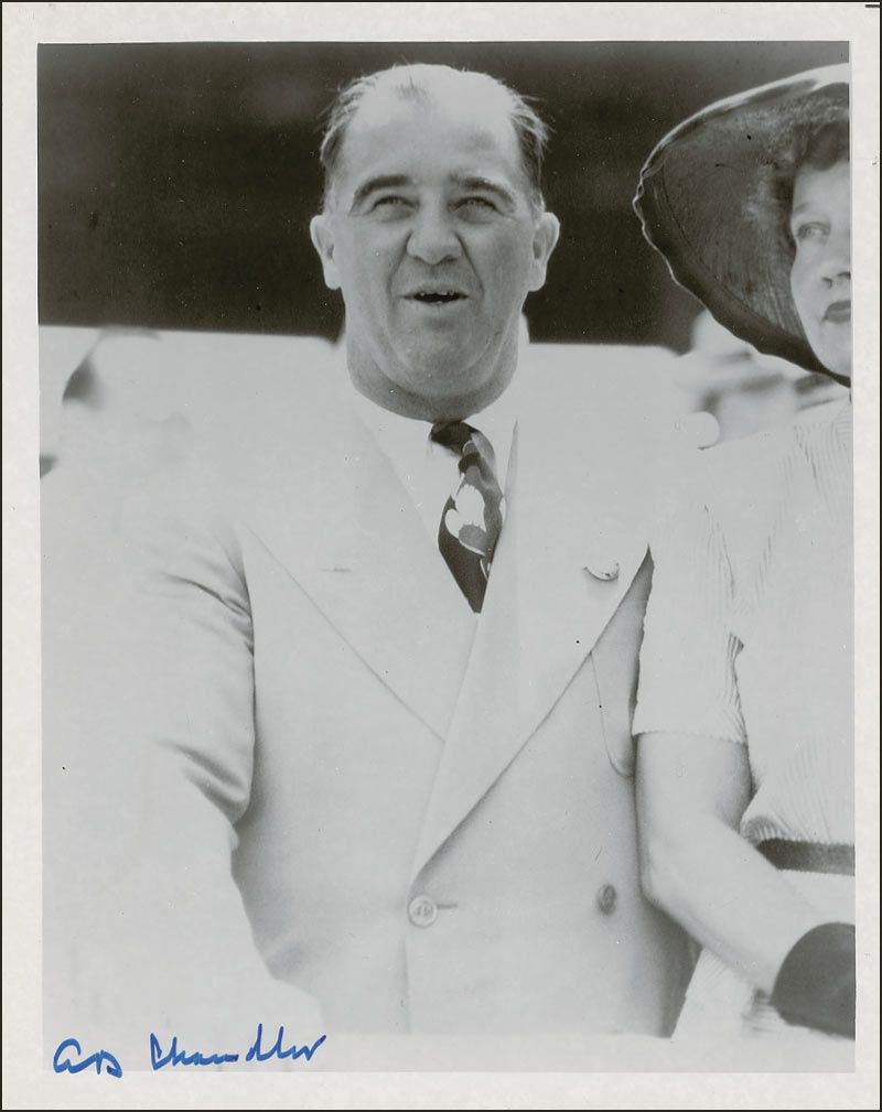 Glossy 8 x 10 photo, signed in blue felt tip, “AB Chandler.” In fine condition, with a light central horizontal surface mark.