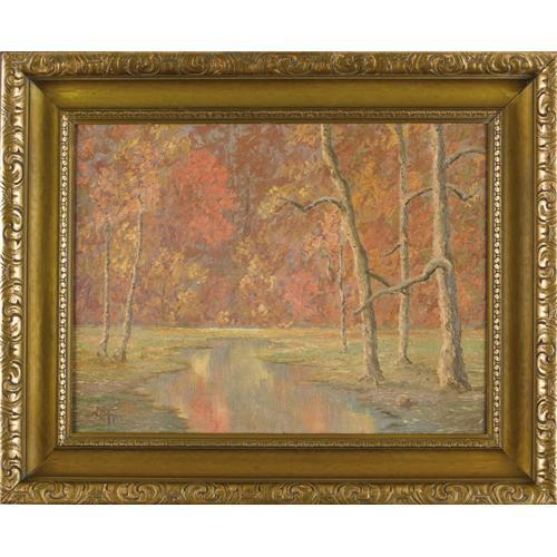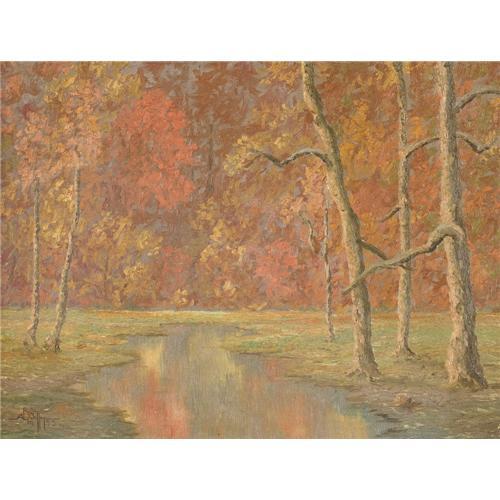 <B>A. B. JEFFERYS (1892-1970)</B></I><BR>Untitled Fall Landscape, 1933<BR>Oil on canvas<BR>18in. x 24in.<BR>Signed and dated lower left<BR><BR> <B>Condition Report:</B> Excellent condition. Period frame in excellent condition.<BR><BR><b>Shipping:</b> Requires 3rd Party Shipping (<a target="_blank" href="http://www.heritageauctions.com/common/shipping.php">view shipping information</a>)
