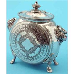 A B.M moonflask shaped biscuit barrel. together with a E.P. kettle on stand (2) £100-150
