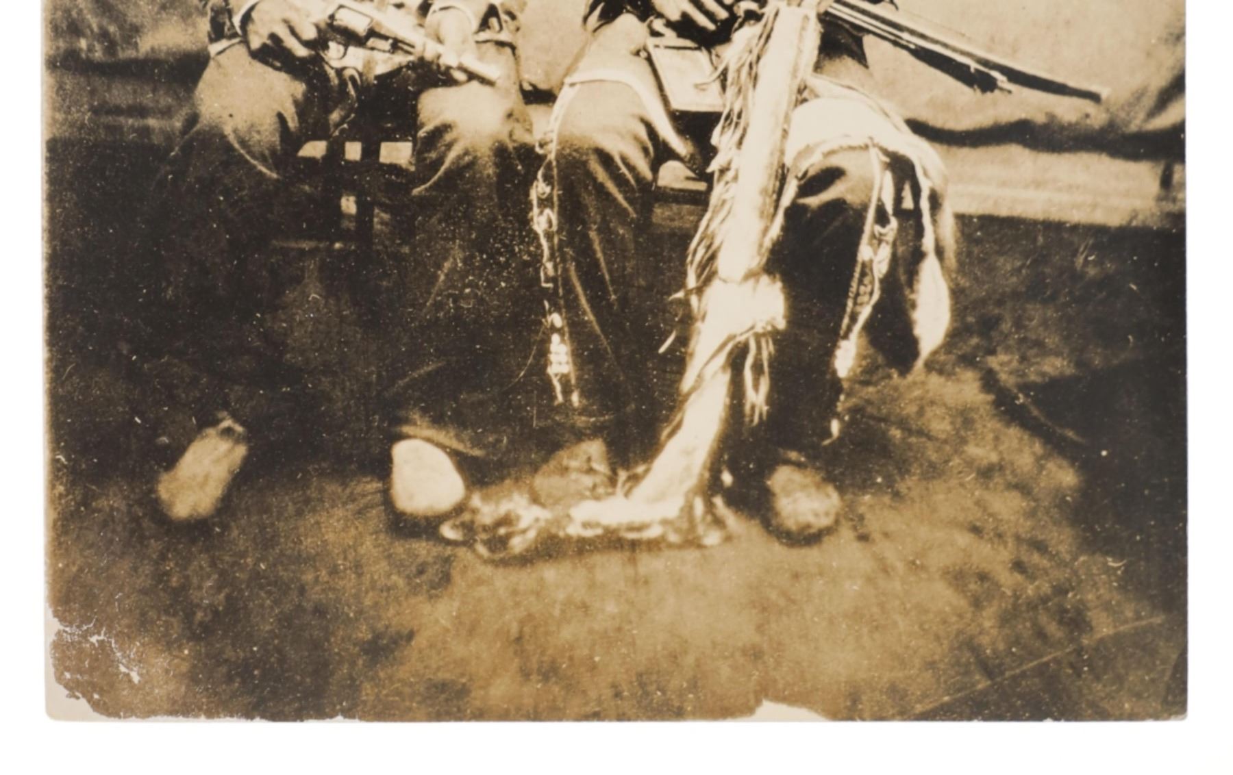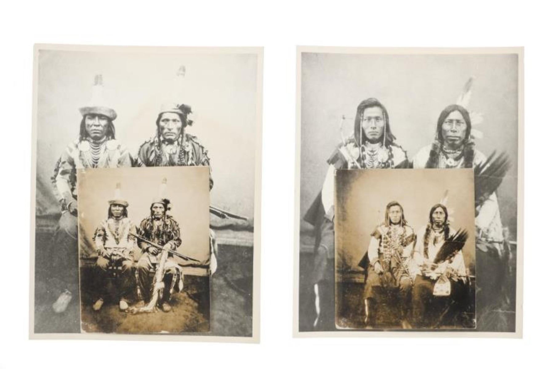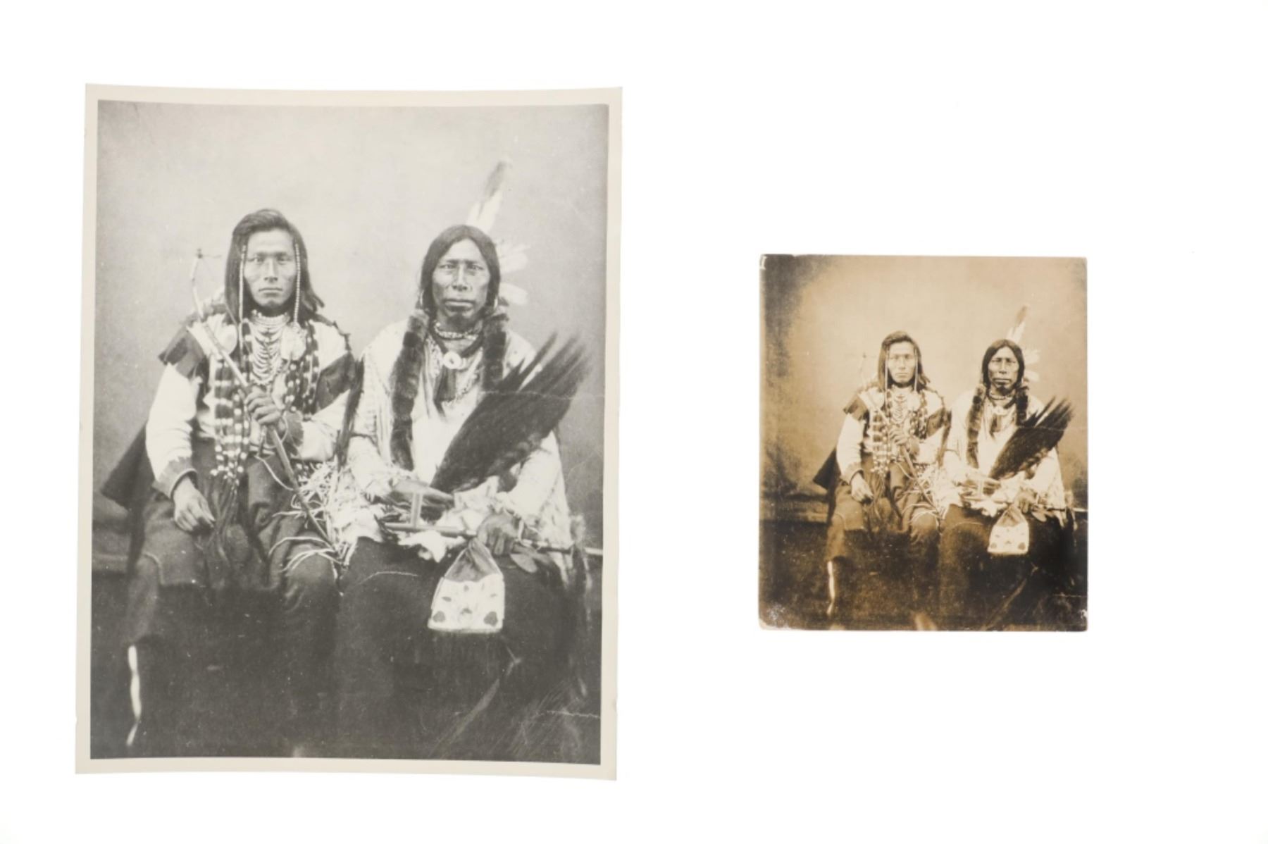 Featured in this lot are Photographs by Captain W. C. Badger from the Photo Collection of Col. A. B. Welch (1874-1945) of Arikara, Mandan and Gros Ventre warriors, their Dwellings and Medicine Lodges, developed in 1926, from ‘lost’ Stereopticon Views. Provenance: From the John Kleinschmidt collection which was on loan to the C.M. Russell Museum from 1987 to 1993 and included in the "The Cowboy West: 100 Years of Photography 1992-1993 exhibit. These photographs are attributed to Colonel Alfred Burton Welch who was well known for his extensive artifact collection and lifelong association with the Sioux nations. The Welch Dakota Papers include thousands of pages of oral interviews, writings, newspaper articles and photographs of the Sioux, Arikara, Hidatsa and Mandan peoples. Welch is credited as the first white man adopted into the Yanktonai Sioux, a separate band from the Yankton Sioux; both are considered Western Dakota people, one of the three groupings belonging to the Sioux nation. Descriptions of the photographs include: