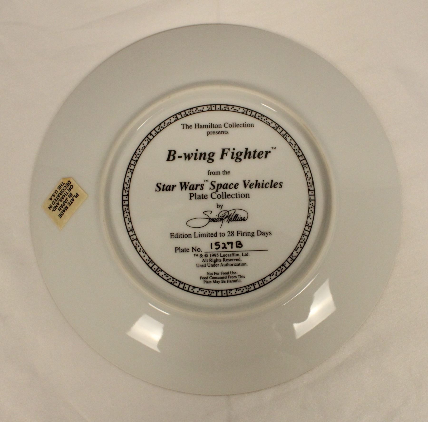 (The Hamilton Collection, 1996) This is a B-Wing Fighter Collector Plate from the Star Wars Space Vehicles Collection. It is individually numbered as plate 1527 B.