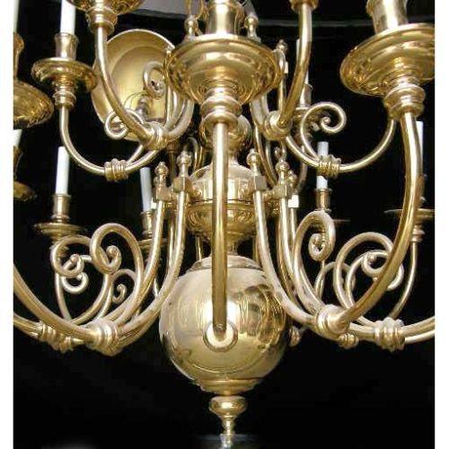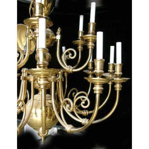 A BAROQUE STYLE BRASS MULTI ARMED TIERED CHANDELIER<BR><BR>Approximately 41"h x 42"dia.