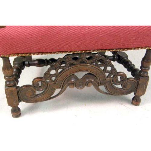 A BAROQUE STYLE WALNUT ARMCHAIR<BR><BR>48"h