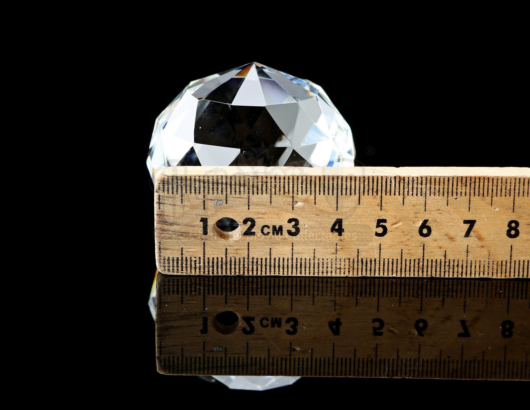 This piece is made of glass and features many angled faces. This design allows the glass to produce every possible color when held to a light source. The piece shows minimal signs of wear and is in very fine condition. Dimensions: 5 cm x 5 cm x 5 cm (2” x 2” x 2”)