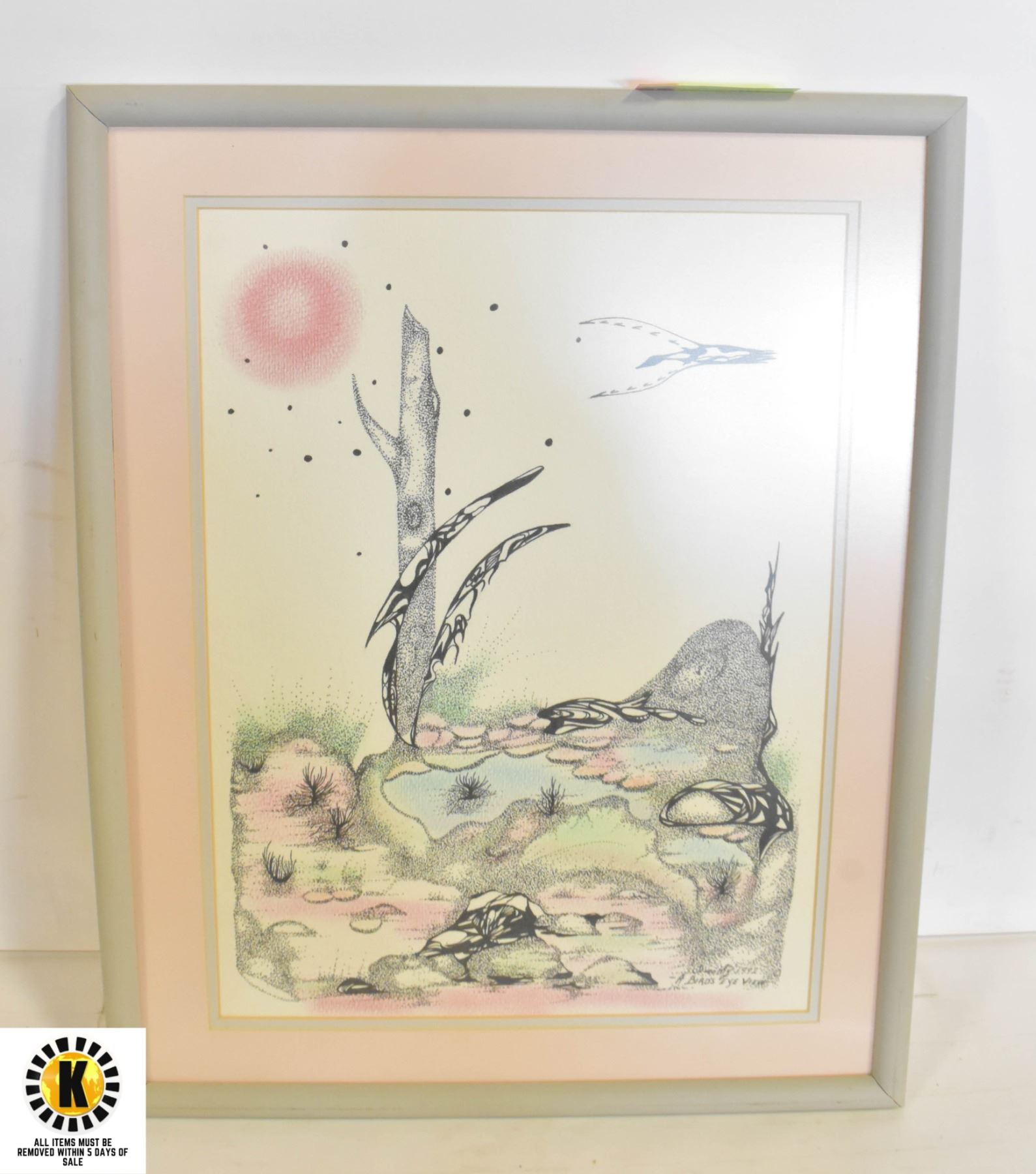 "A BIRDS EYE VIEW" FRAMED PICTURE 18.5" X 15"