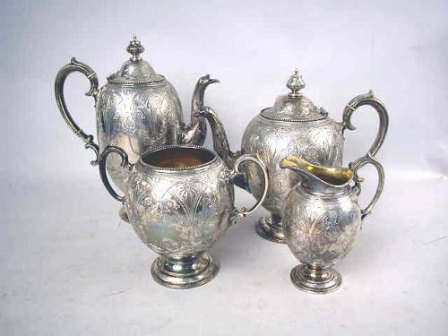 A BIRMINGHAM TEA AND COFFEE FOUR-PIECE SERVICE; Including, a teapot, coffee pot, a two-handled sugar and creamer Tallest: 10 1/2"h, apx. 60 T.O