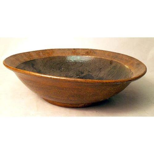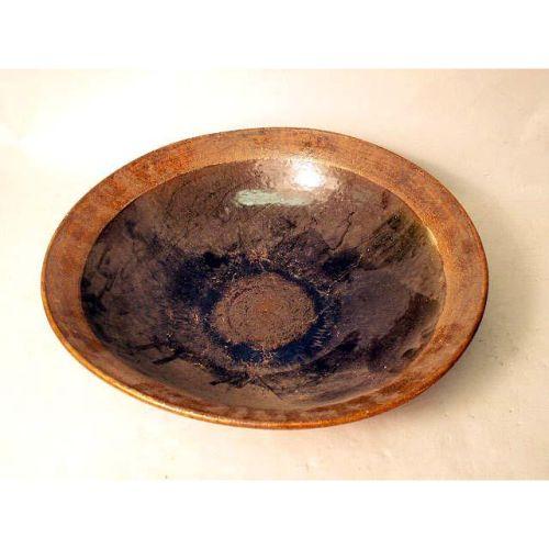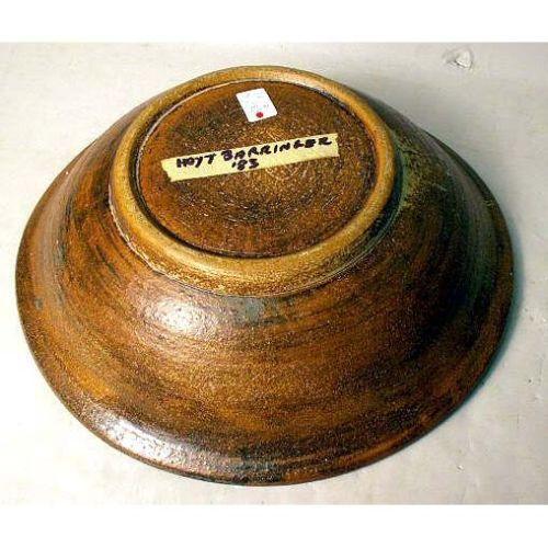 A BLACK AND BROWN GLAZED REDWARE SHALLOW BOWL<BR><BR>Inscribed "Hoyt Barringer `83". 5 1/2"h x 18"dia.