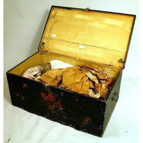 A BLACK PAINTED PINE BLANKET CHEST<BR><BR>Wear and losses, 17 1/2"h x 40"w x 23"d