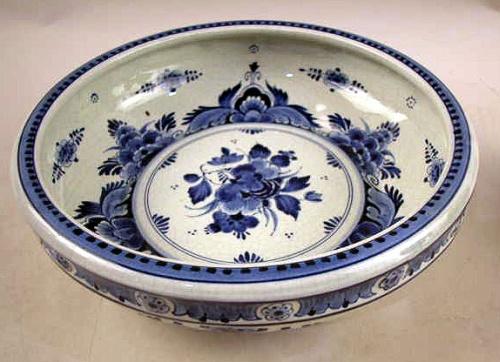 A BLUE AND WHITE DELFT BOWL;