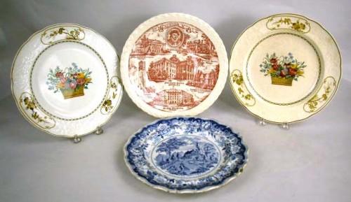 A BLUE AND WHITE HISTORICAL PLATE "THE RESIDENCE OF THE LATE RICHARD JORDAN"; 10" diameter, Together with assorted dinnerware plates