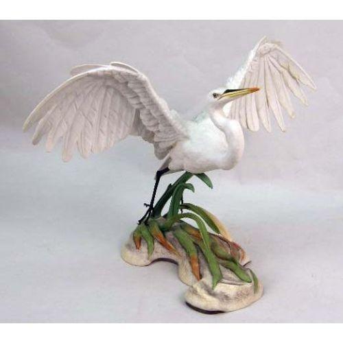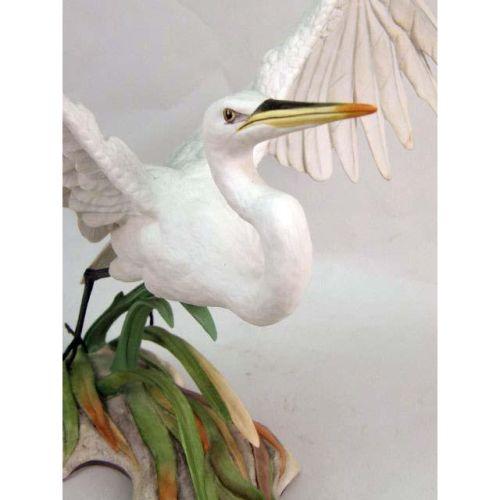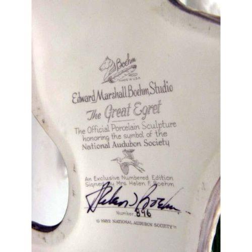 A BOEHM POLYCHROME-DECORATED PORCELAIN FIGURE OF "THE GREAT EGRET"<BR><BR>From the Edward Marshall Boehm Studio, signed by Helen F. Boehm, 12 1/2"h
