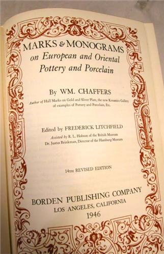 A BOOK TITLED "CHAFFERS MARKS AND MONOGRAMS OF EUROPEAN AND ORIENTAL POTTERY AND PORCELAIN" 1946