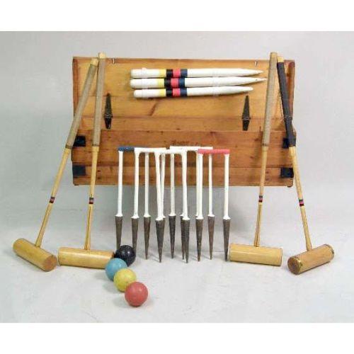 A BOXED ABERCROMBIE AND FITCH CROQUET SET<BR><BR>In original box, stamped on outside of box Abercrombie & Fitch, New York, wear