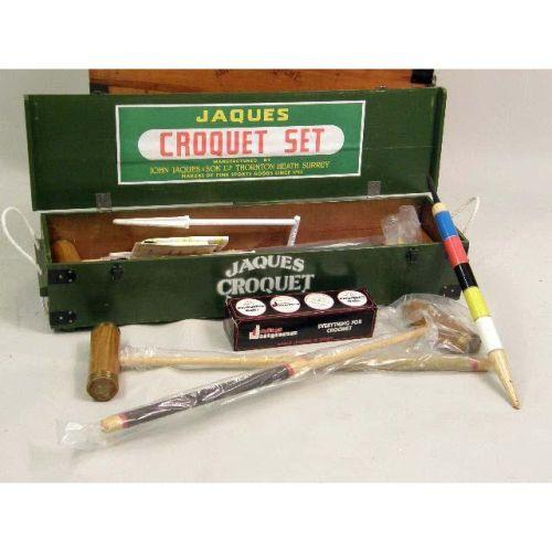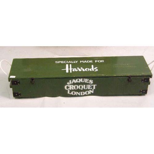 A BOXED JACQUES CHAMPSION CROQUET SET<BR><BR>#71000, in original box, specially made for Harrod`s is stamped on outside of box, wear