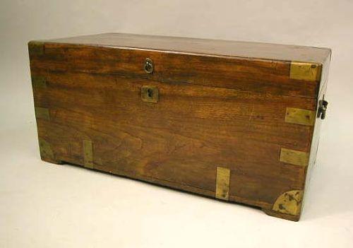 A BRASS BOUND CAMPHORWOOD SEA CHEST; The rectangular brass mounted top, opening to a well, case similarly bound and fitted with carrying handles, 16" x 34 1/2" x 18"