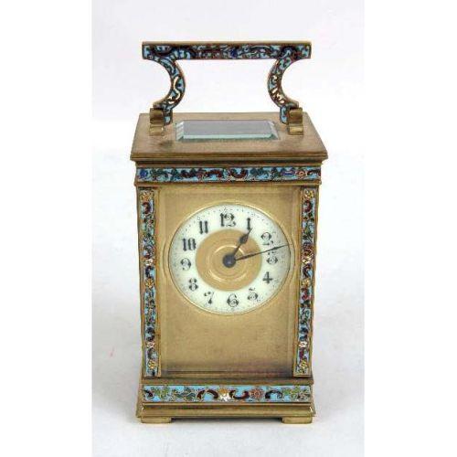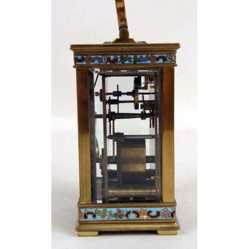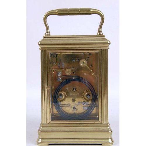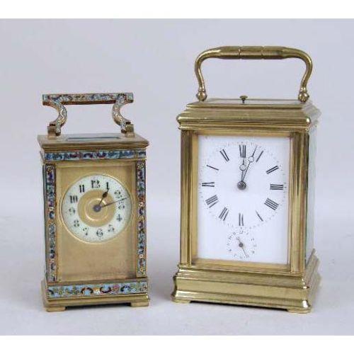 A BRASS CARRIAGE CLOCK<BR><BR>Marked "Procourt, Paris." Together with a French enamel and brass carriage clock, marked H&H, wear, 6 3/4"h